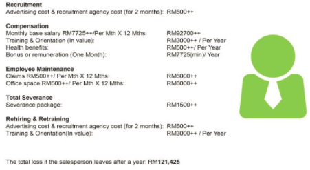 Your secretary leaves after 3 months as she is unable to fit into the company while your sales manager leaves after a year as he wants to explore another industry.